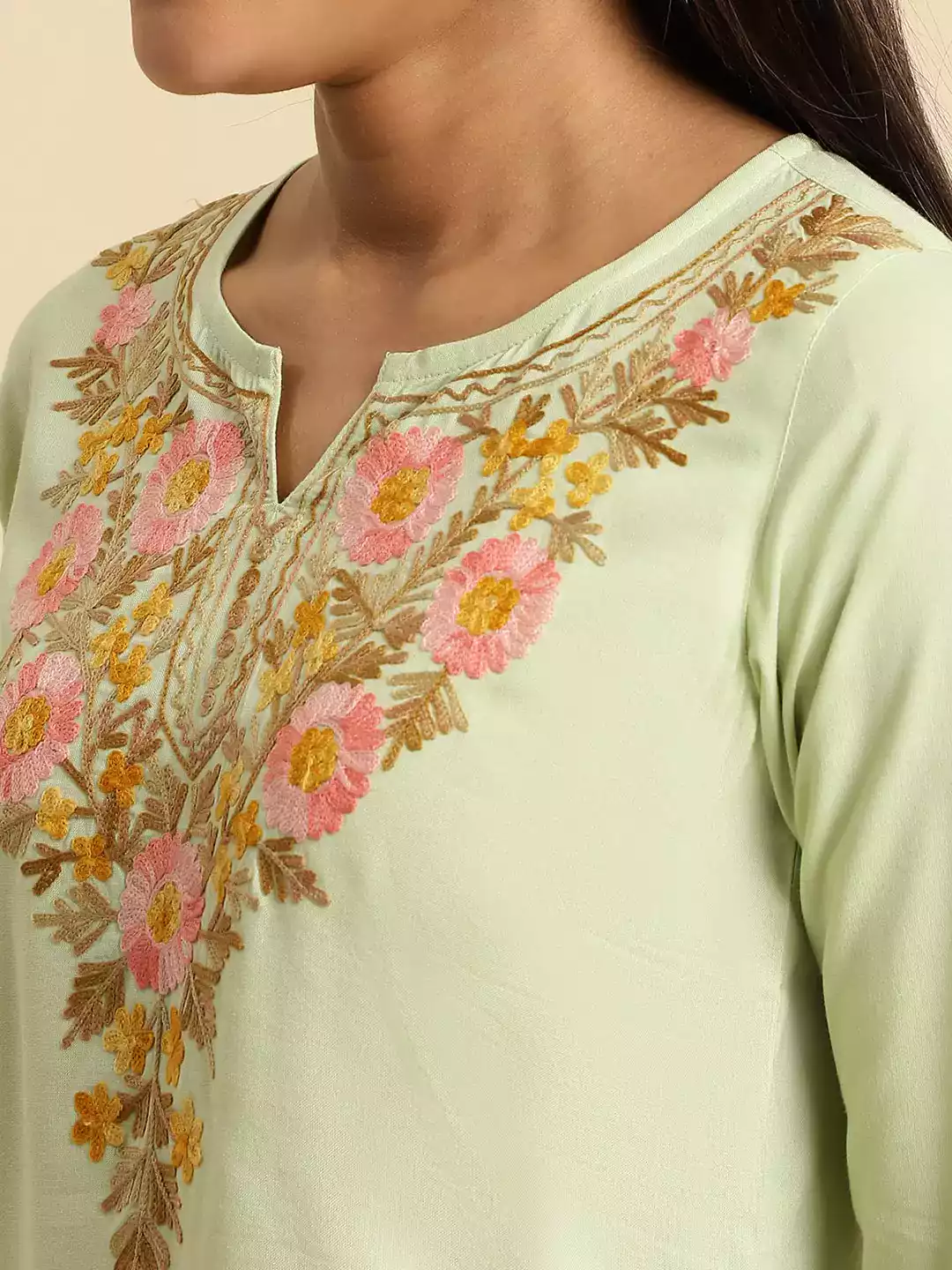 Mustard Colored Kashmiri Short Kurti