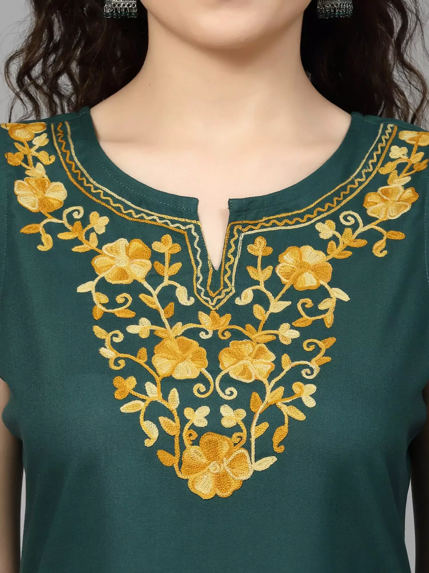 Home Short Kurtis Nadia Green Sleeveless Short Kurti