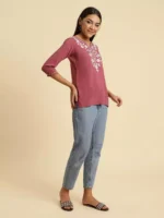 Pink Kashmiri Silk Work Short Kurti