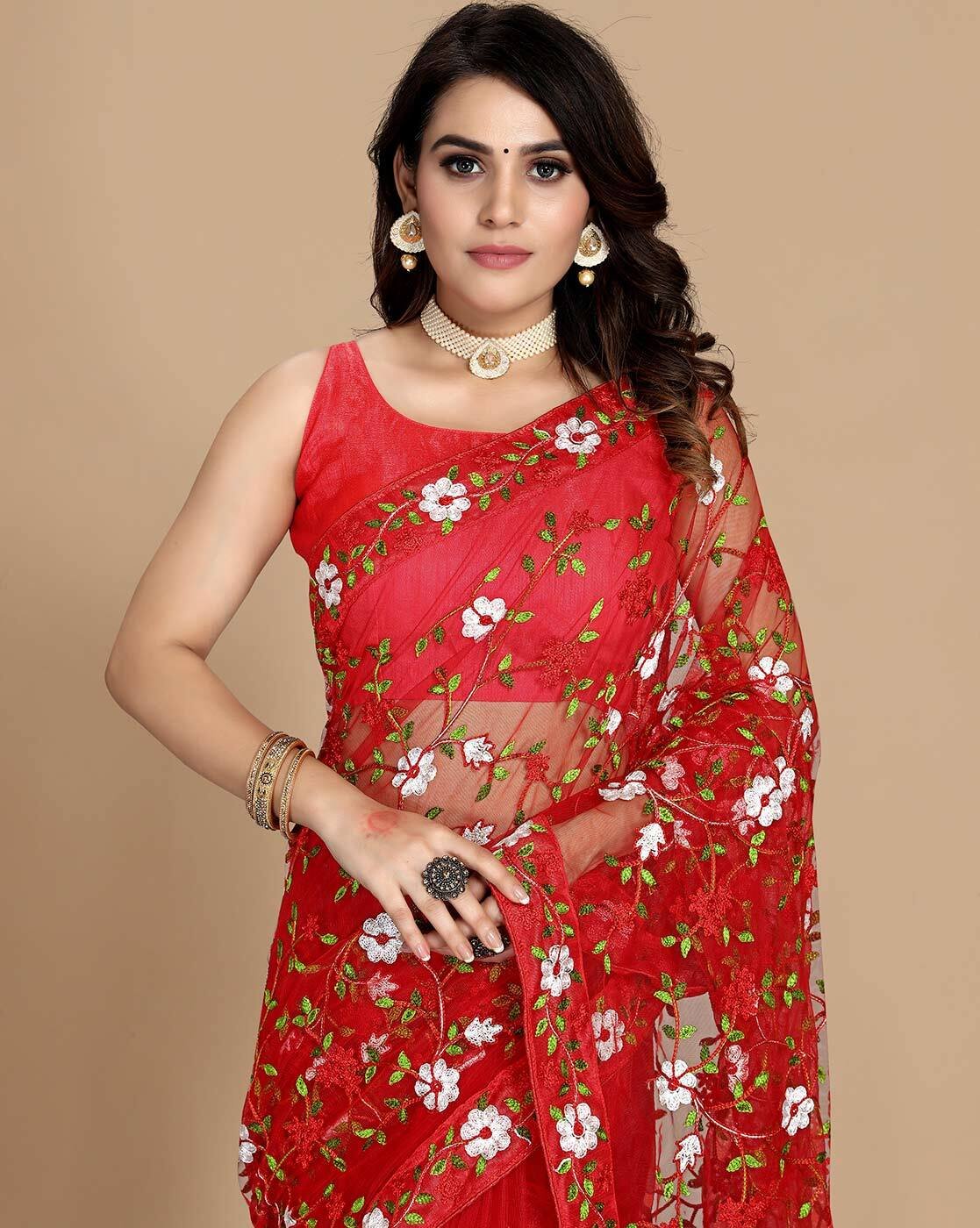 Home Saree Women Embroidered Net Saree